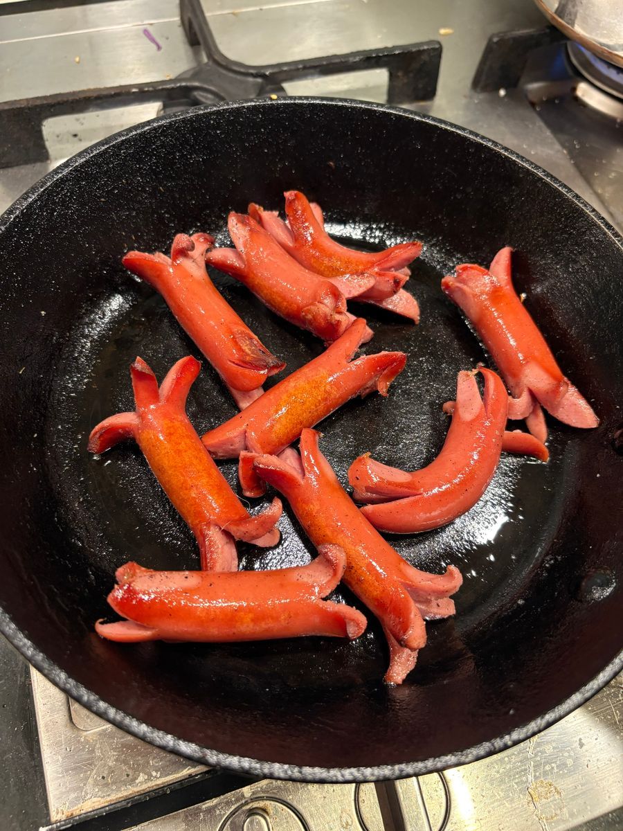 Visst ser det lustigt ut när man klipper prinskorvarna i båda ändarna så att de spricker upp men det finns ett skäl till att du ska klippa prinskorvarna.