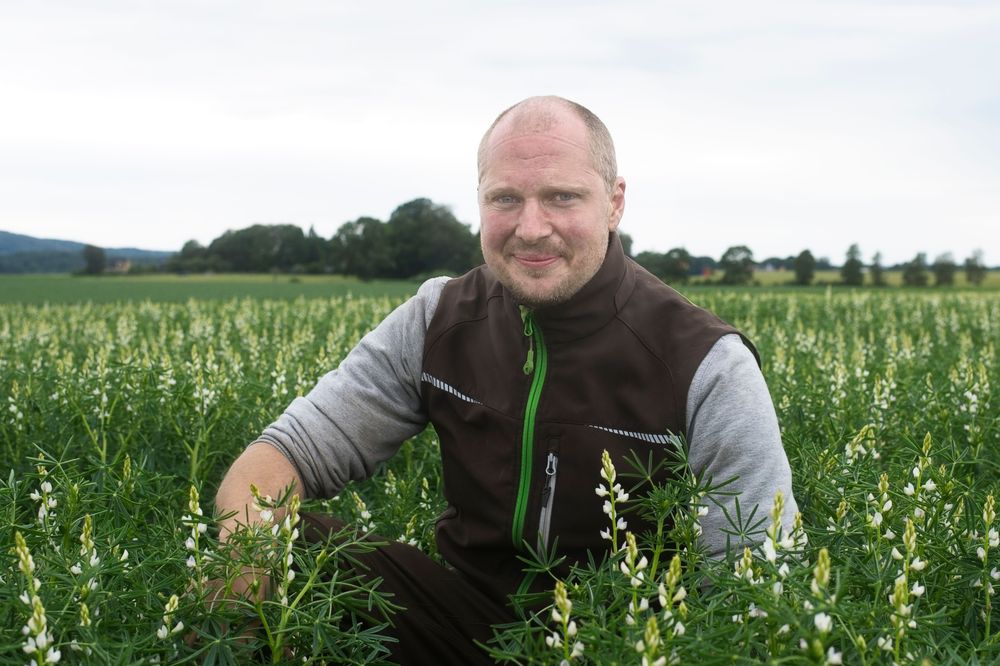 – Vi odlar ju annat med, och tidigare hade vi vita bönor, det går också bra här. Men det är intressant med lupiner, och det är extra roligt att lära sig och vara med på något nytt, säger han.
