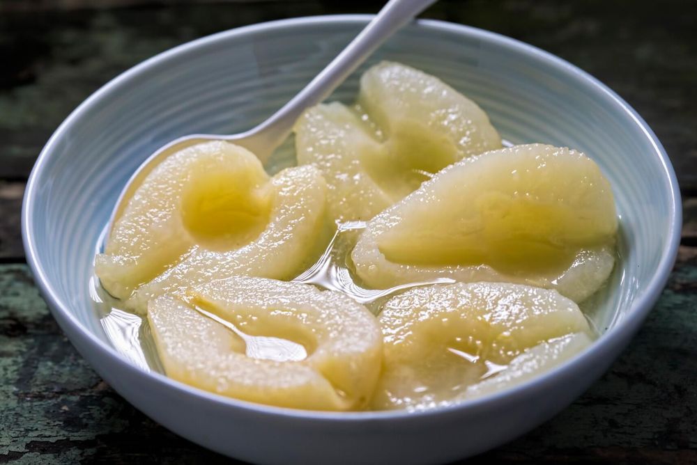 Päron på burk med After eight-choklad