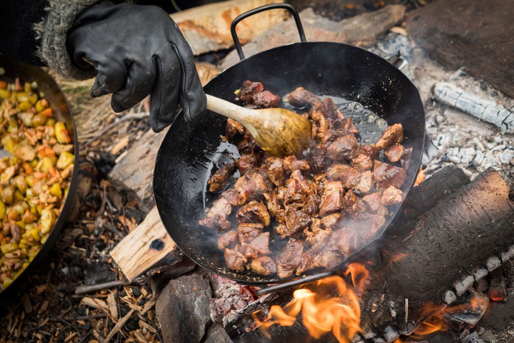 Första middag blir det färskt kött, kanske en renskav. Andra lunch kan bestå av en soppa eller/och färsk korv som Elin och Ola tillverkat.