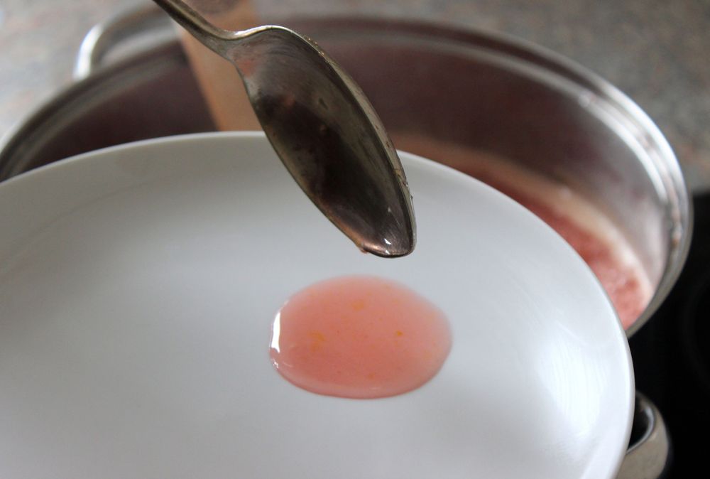 För att kolla om marmeladen eller sylten har kokat klart kan du göra så här: