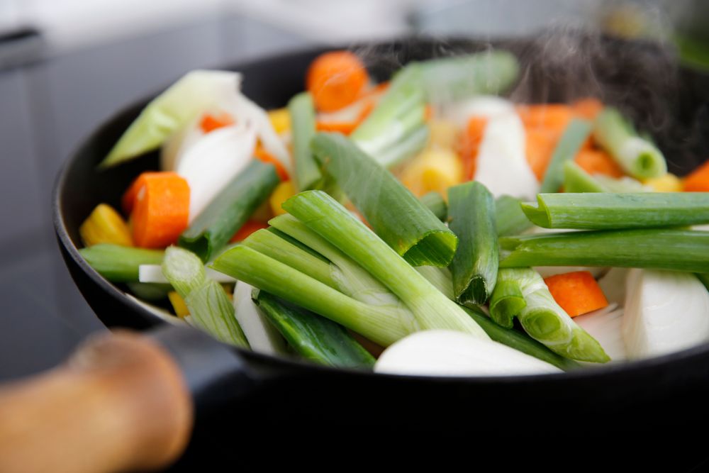 Fräs grönsakerna i några matskedar rapsolja. Lägg gärna i en klick smör för att förstärka grönsakernas smaker. Bryn sedan lätt utan att bränna vid grönsakerna.