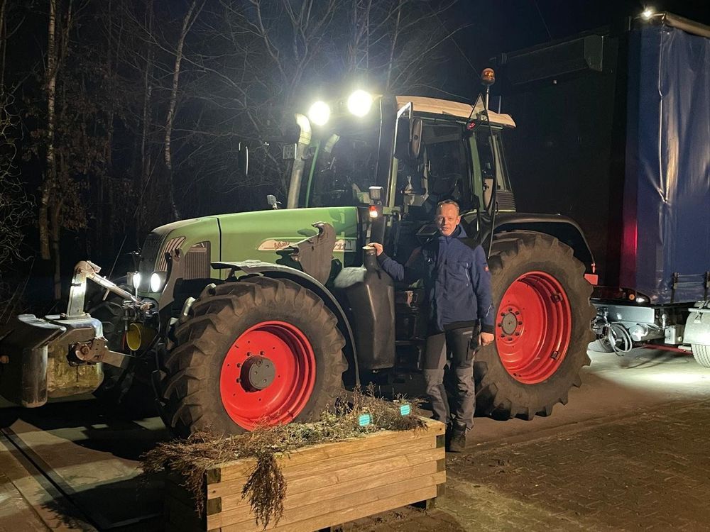 I slutet av februari rullade ett iögonfallande ekipage i väg från Eibergen i östra delen av Nederländerna, fem kilometer från den tyska gränsen. En traktor drog en lastbilsvagn lastad med ytterligare traktorer och en container.