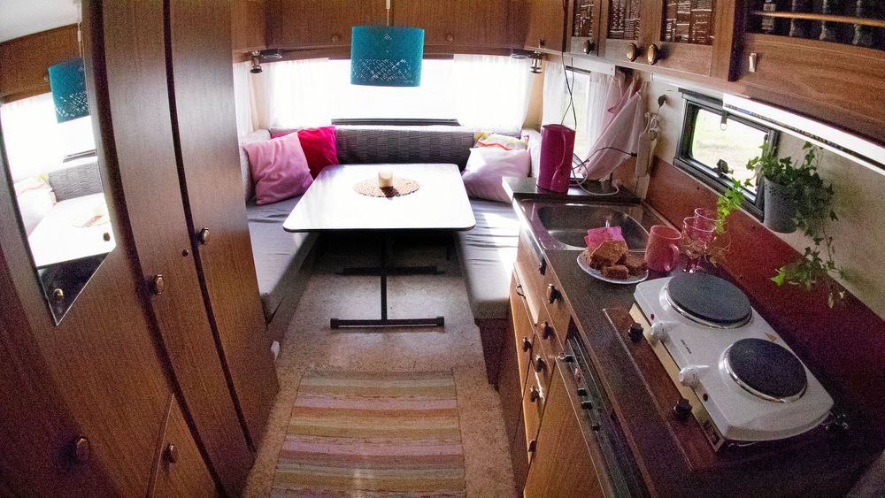 När de fixat till husvagnen invändigt - med nytt tyg på kuddar och dynor, mysbelysning, trasmatta, filtar samt ett nytt batteri och toalett inhandlade - ville Elin testa att allt fungerade.