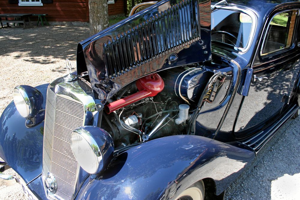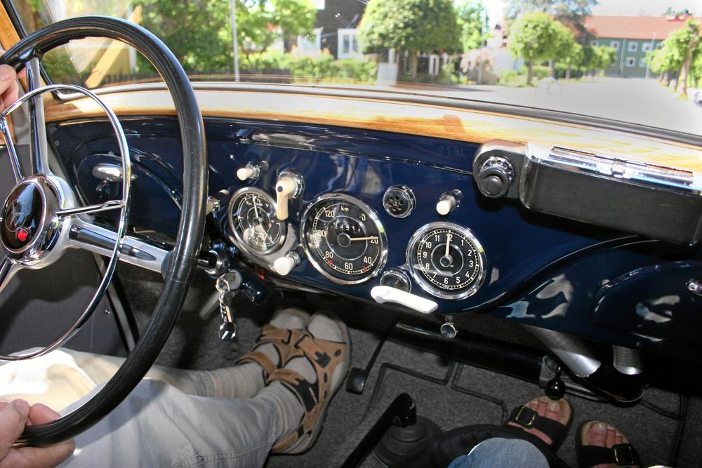 Den knackar lite, som en gammal förkammardiesel ska göra. För övrigt är den gamla Mercedesen från 1951 förvånansvärt behaglig att åka i.