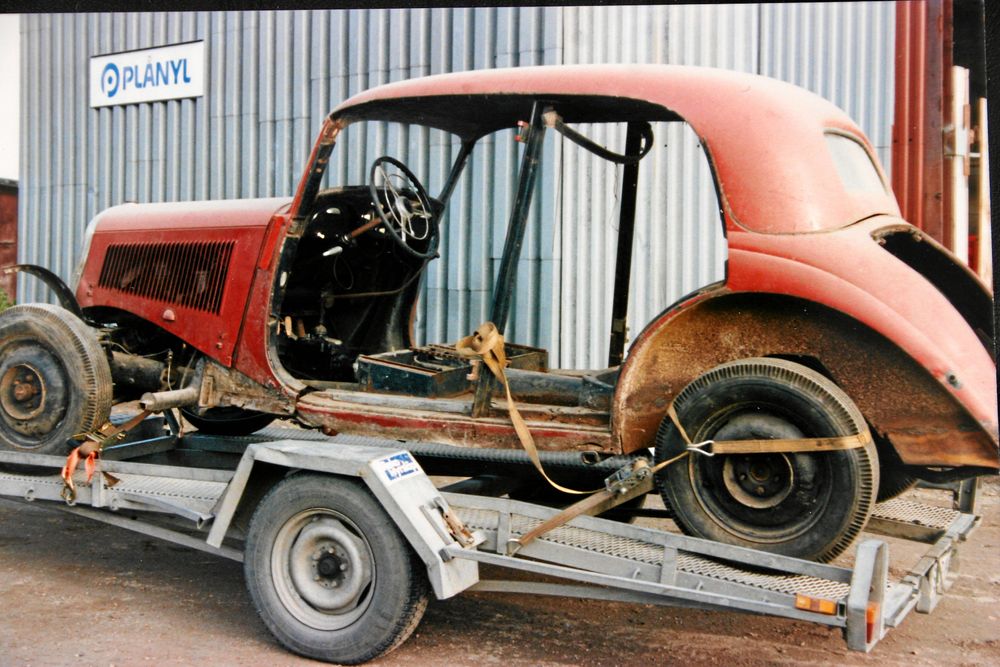 Han baxade upp sitt nyförvärv på en trailer och körde hem till garaget på Villavägen i Flen. Här skulle mekas.