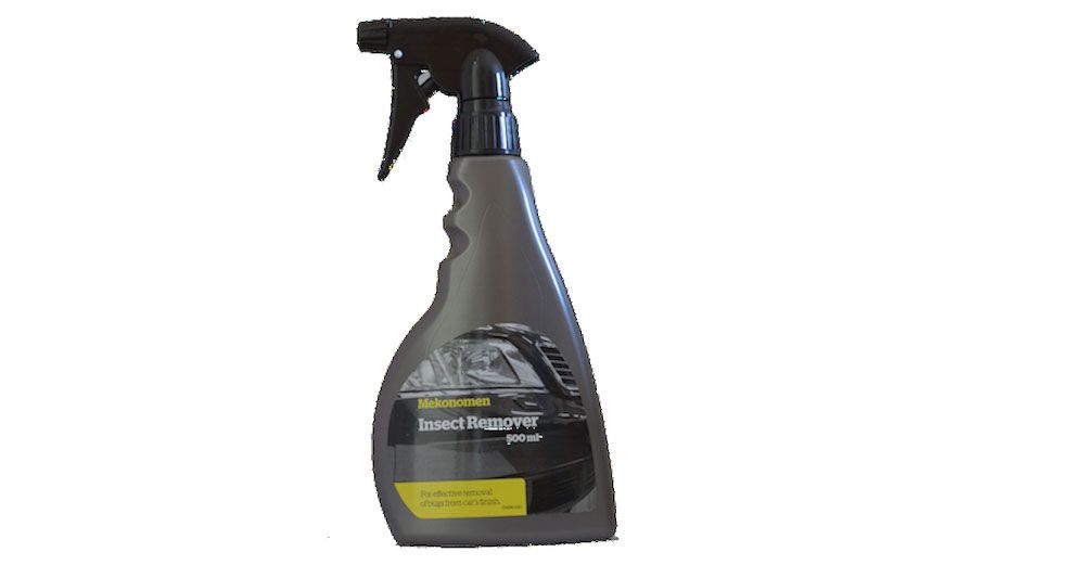 Omdöme: Sveriges förmodligen vanligaste insektslösare kommer i en rejäl flaska med ett munstycke som kan regleras i av, spray eller stråle. Att få en koncentrerad stråle är bra för höga fordon som husbilar eller husvagnar. Vätskan är lite mer trögflytande jämfört med övriga och rinner inte av så lätt. Efter tvätt är karossen i stort helt myggfri. Testens vinnare!