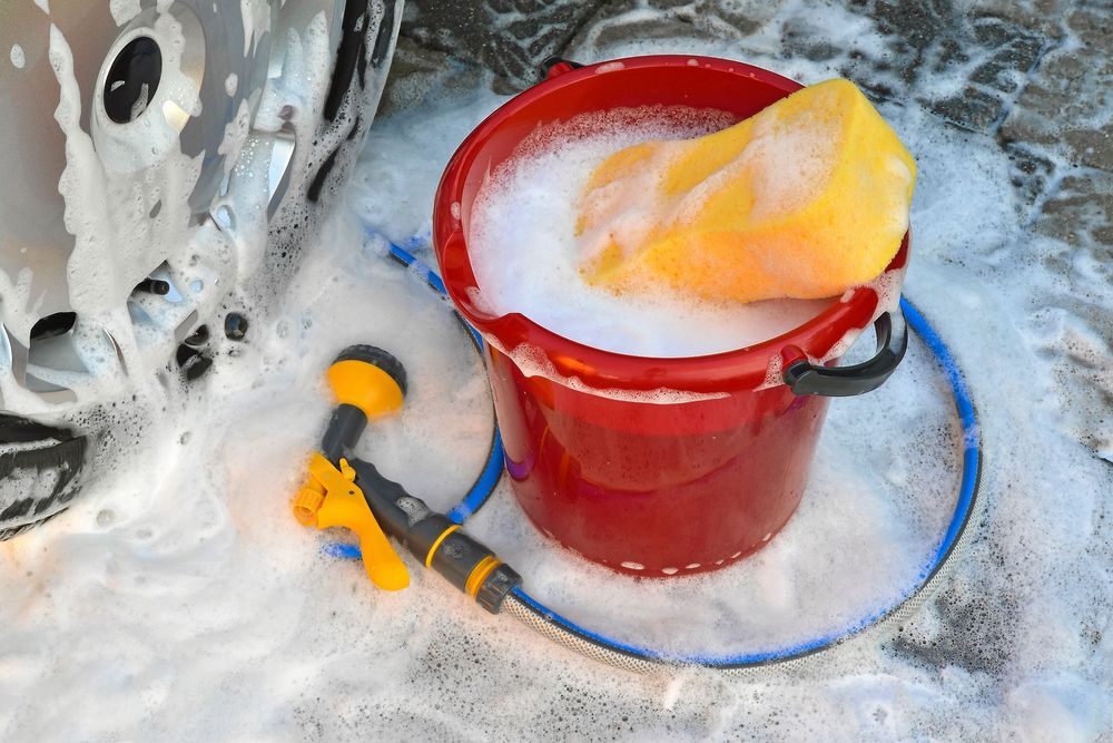 För att optimera din tvättid: Spraya avfettning på bilen och medan medlet verkar kan du gå och preparera hinken med schampovatten.