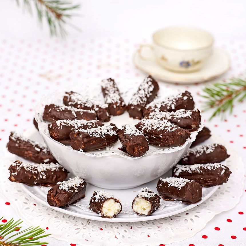 De här bountybitarna är fyllda med en krämig kokosfyllning, makalöst smarriga! Här hittar du receptet!