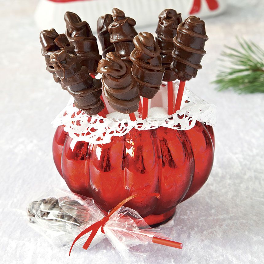 Försvinnande goda och sega chokladkola-klubbor med smält choklad ringlad på ytan. Här hittar du receptet!