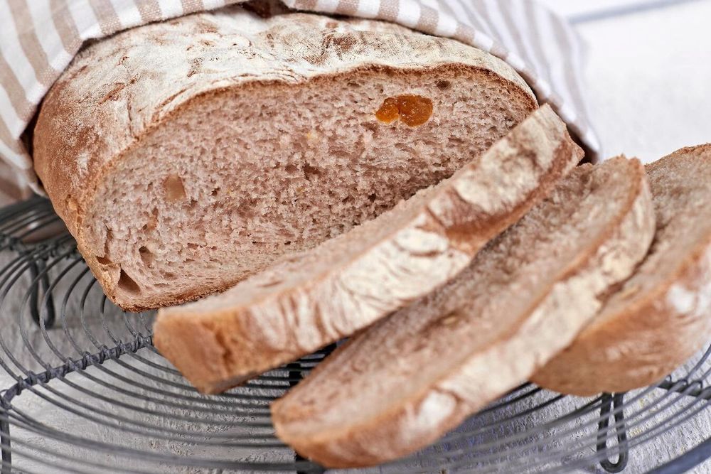Torkade aprikoser och valnötter är hemligheten bakom detta bröd med rågsikt.