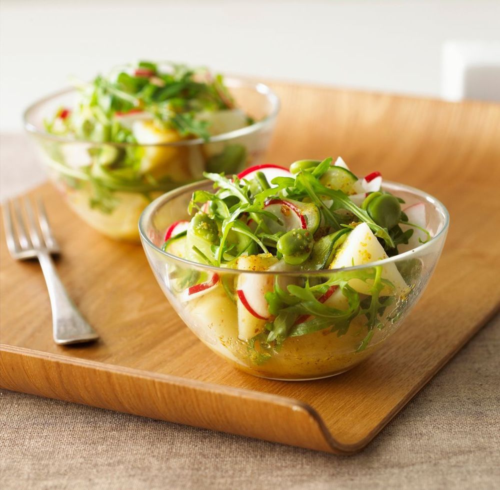 En välkomponerad färskpotatissallad – vad kan passa bättre till sommarens grillmat, picknick eller buffébord? Här med en fräsch vinegrättdressing.