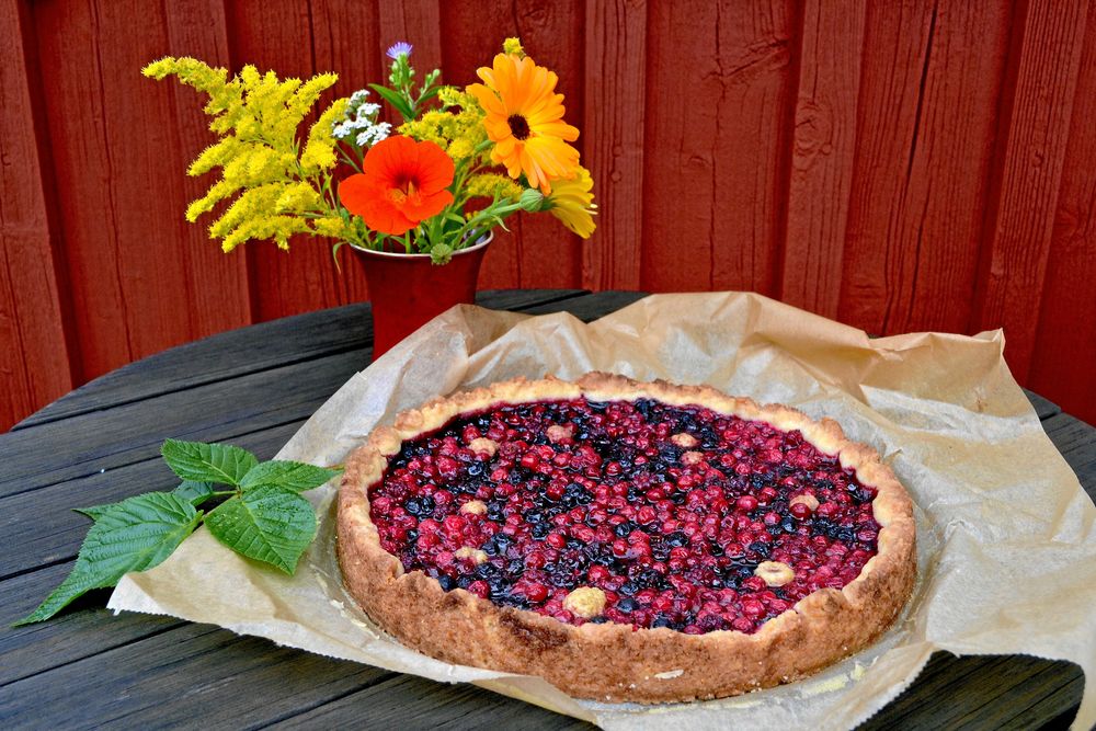 – Den bakar jag ofta i trädgårdscaféet, men smakerna ändrar sig från vecka till vecka, allteftersom de olika bären mognar, säger hon.