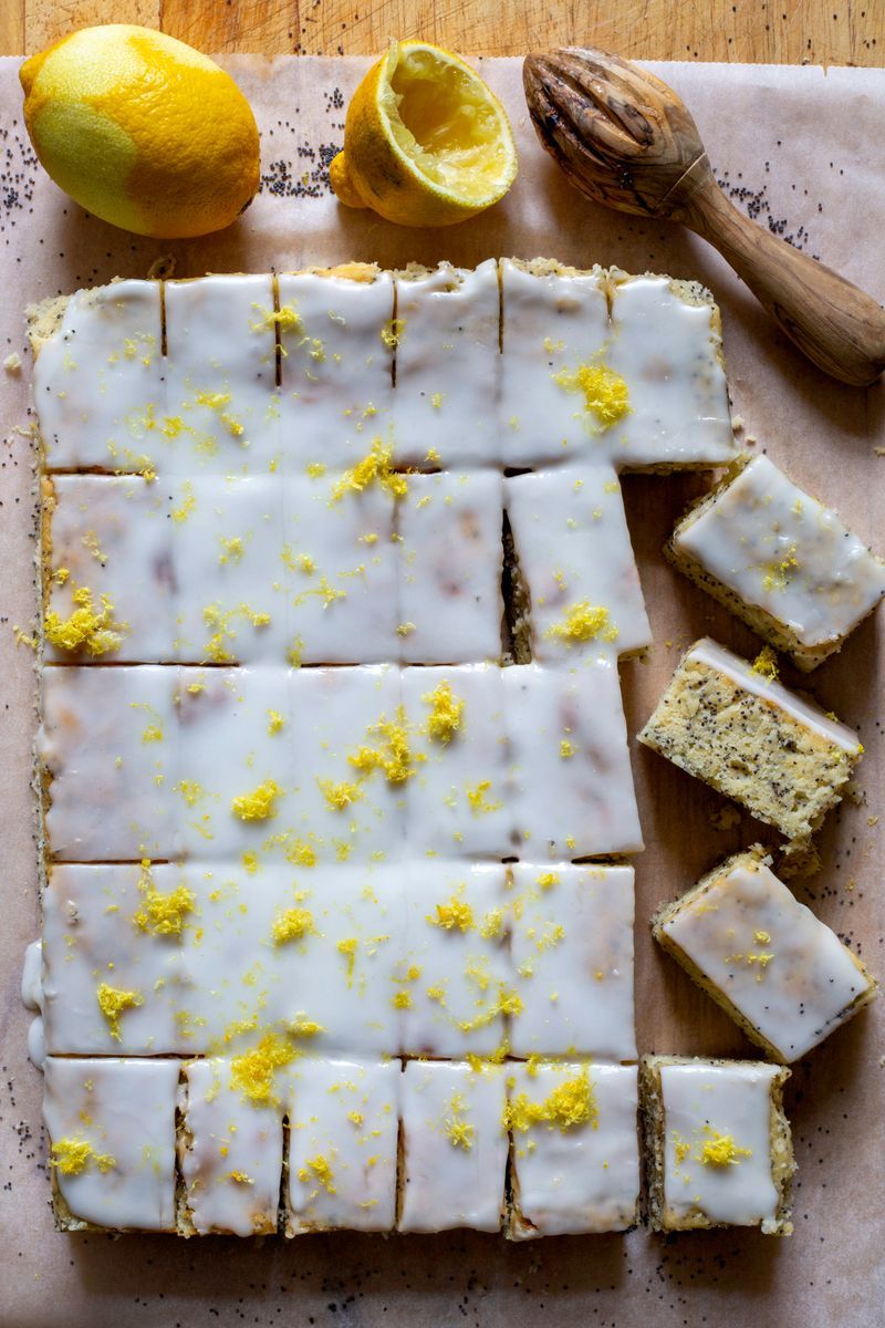 En kaka i långpanna med mycket smak av citron och vallmofrö. Glasyren gör kakan fantastiskt god!