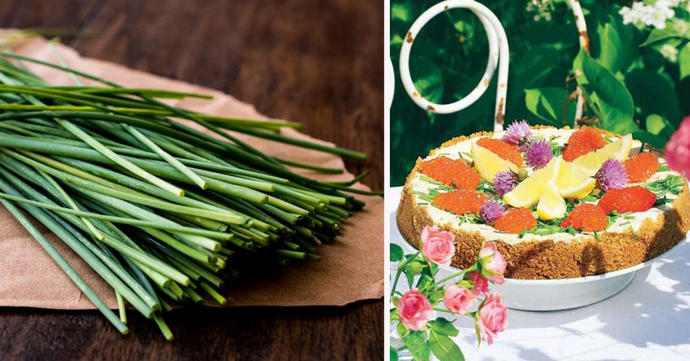 Häll fyllningen över bottnen. Täck över med plastfolie och låt tårtan stelna i kylen minst 4 timmar. Garnera med rom, gräslök och citronklyftor.