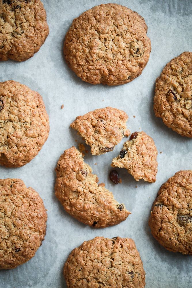 Rejäla, lite mjuksega kakor med russin och havre. Farinsockret i degen ger extra god smak. Gillar du inte russin? Byt ut dem mot någon annan torkad frukt, choklad eller nötter.