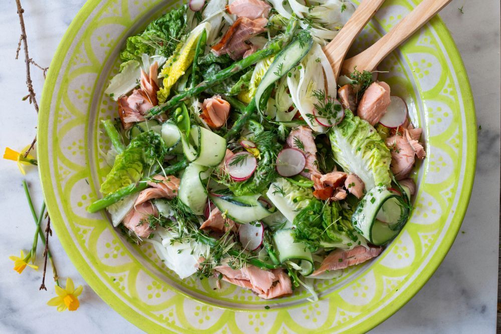 Mycket smak, mycket crunch, så fräsch! Den här laxsalladen är en perfekt bufférätt till påsk men funkar lika bra som en lättare lunch.