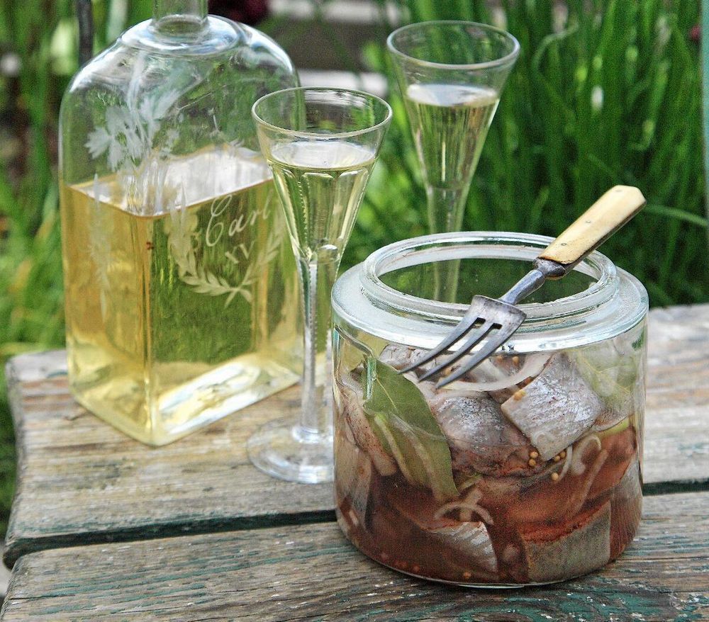 Inlagd sill på ett sätt som påminner om matjessill – med malt sandelträ i lagen. Mycket gott!