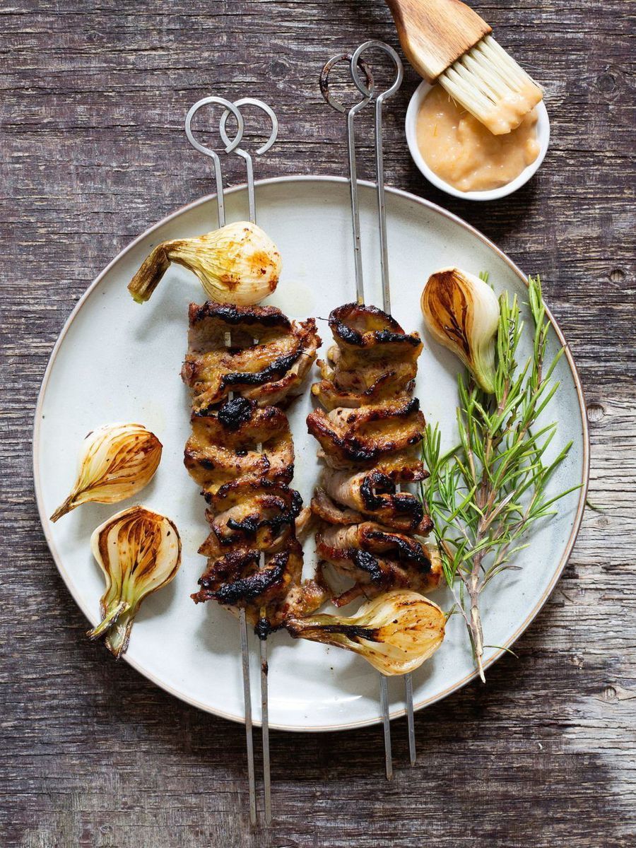 Pensla med glaze och grilla till riktigt fin färg. Pensla eventuellt spetten med lite olja också innan grillen så får de extra fin yta. Bjud resten av glazen vid sidan av spetten.