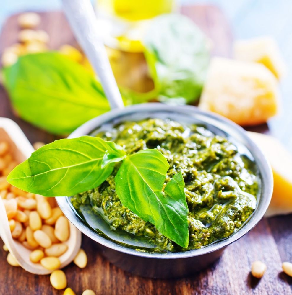 Byt ut butiksbasilikan mot gröna groddar som rädisa, broccoli, alfalfa eller basilika. Mixa med vitlök, parmesan och oliv- eller kallpressad rapsolja. Smaka av med salt och peppar.