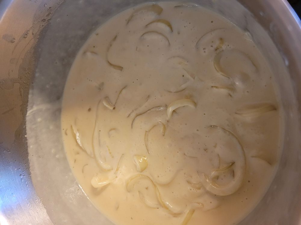 En mild men fantastiskt god löksås som är riktigt rund i smaken. Passar naturligtvis ypperligt till knaperstekt fläsk. Eller, för de som föredrar det, stekt lever.