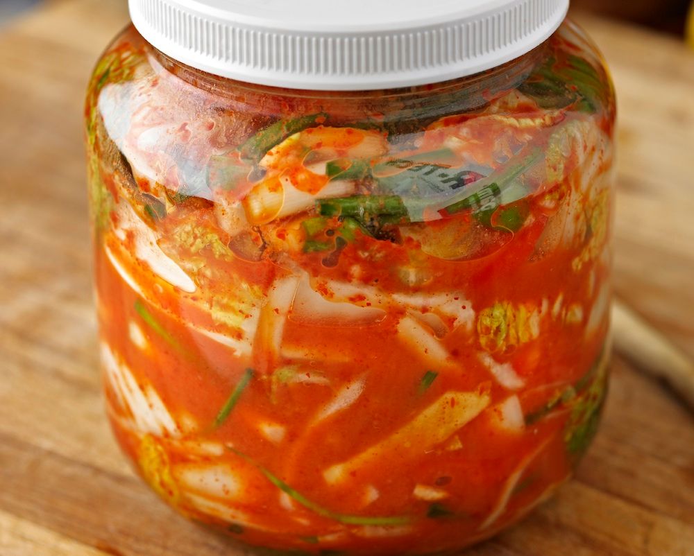 5. ”Tvinna” de halva kålhuvudena och lägg dem tätt i en storleksanpassad burk med tättslutande lock. Låt stå 1 dygn i rumstemperatur. Ställ därefter in den i kylen 5–7 dagar.