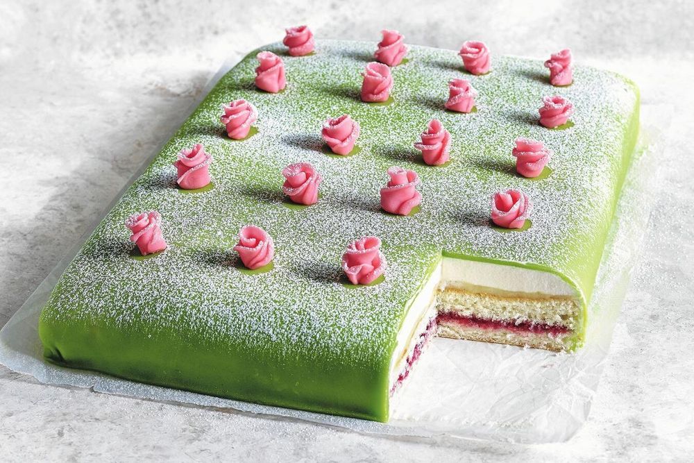 Är ni många som firar? Då är det en smart och smarrig prinsesstårta i långpanna som gäller. Här är Frida Skattbergs härliga recept – ger 30 mumsiga bitar!