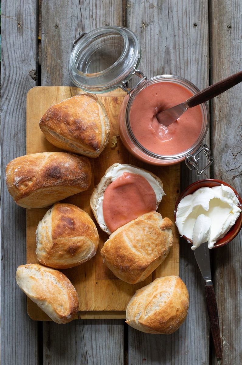 Rabarbercurden passar fint tillsammans med färskost på nybakat bröd eller scones.