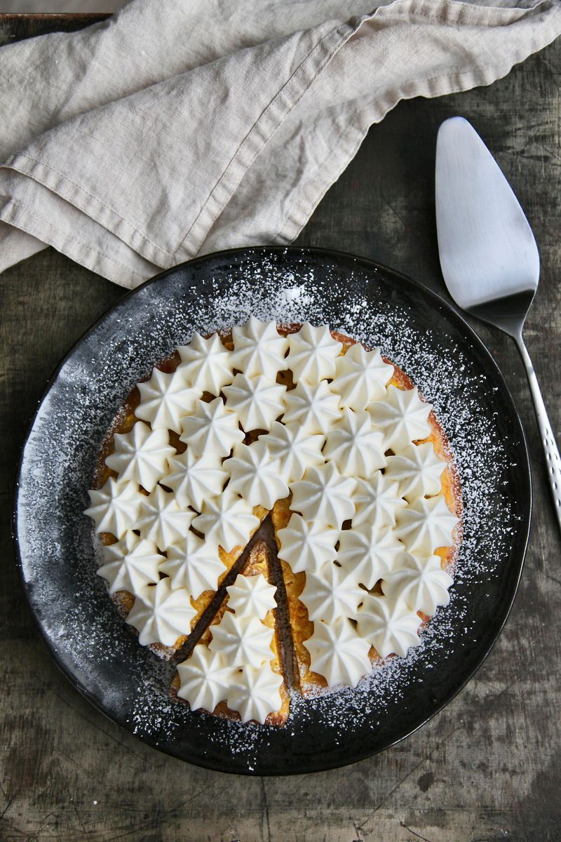 Kakan kan serveras som den är, men toppa den gärna med vispgrädde, ibland med några bär på toppen, till exempel lingon eller blåbär.