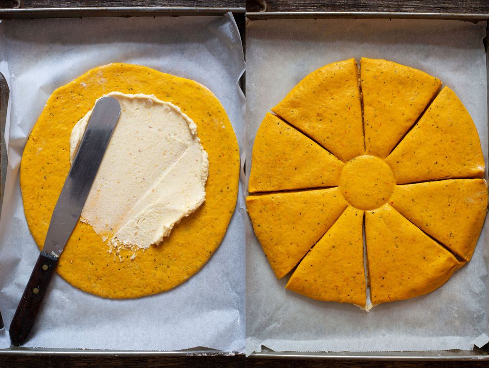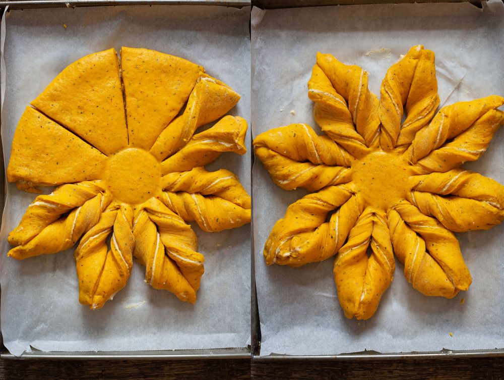 Ingredienserna till stjärnan hittar du i ingredienslistan. Där hittar du även stegen för att göra ut din deg och fyllningen. När du jäst klart degen och gjort fyllningen följer du instruktionerna nedan för att baka ut, fylla och baka din stjärna.