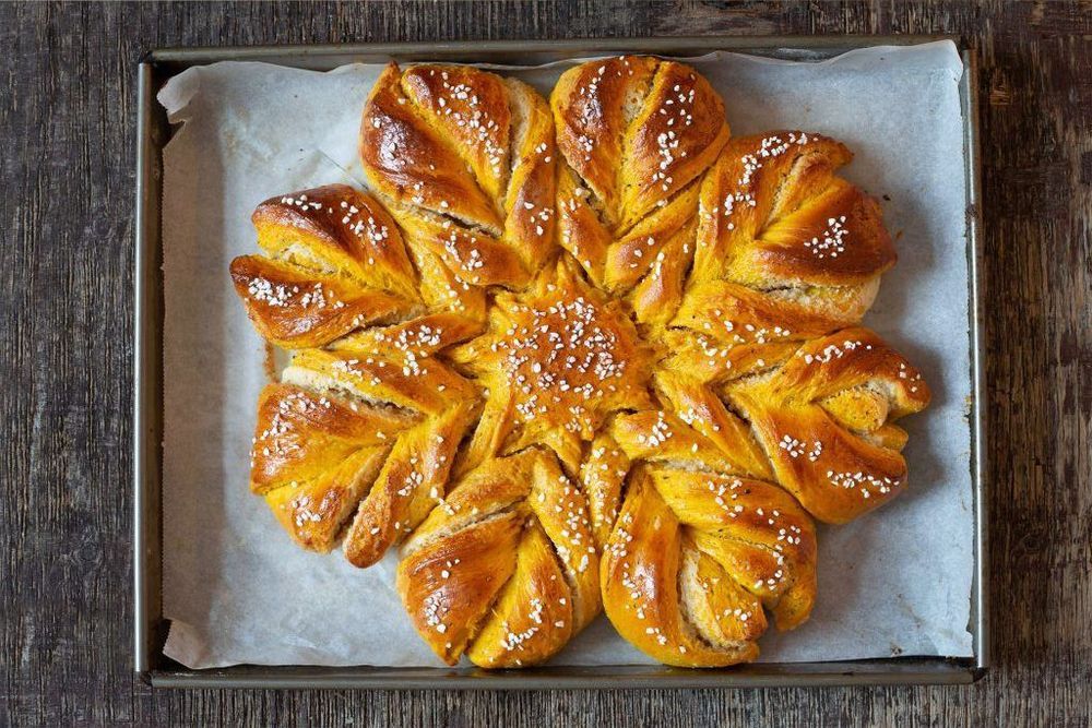 Den här goda saffransstjärnan är faktiskt enkel att göra men oj, vad du kommer imponera! I stjärnans mitt gömmer sig en gudomlig mandelmassafyllning. God jul!