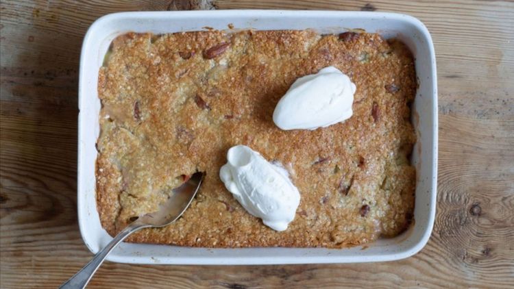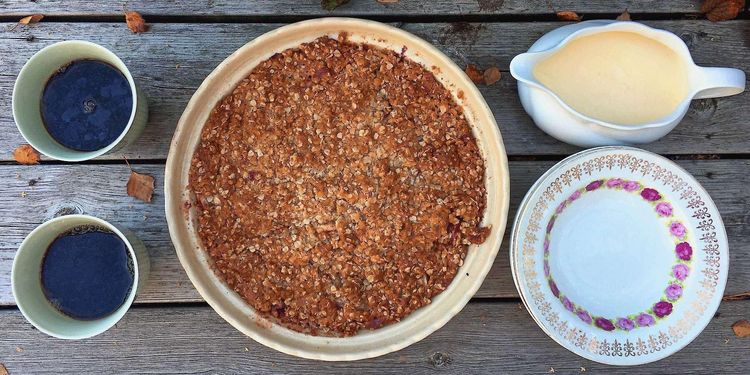 Pajen är ljuvligt smarrig tack vare ett täcke på smör, havregryn, socker och sirap.