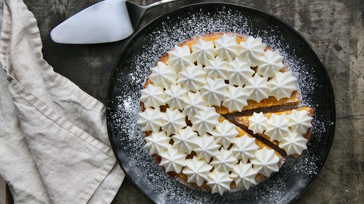 En härlig chokladbotten möter maräng och fluff smaksatt med klassikern Polly – det här är en kalastårta extra allt!