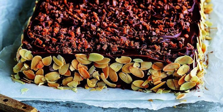 Den här kakan är riktigt god till en kopp kaffe! Nötiga bottnar varvade med smörkräm och toppade med chokladganache och crunchig Daim. Vad kan gå fel?