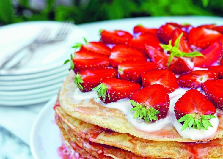 Anna Billings ljuvliga recept på pannkakstårta med jordgubbar kan vara sommarens härligaste recept.
