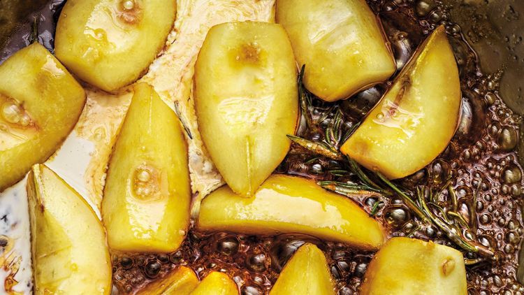 Rosmarin är kanon till både äpple och päron, särskilt bra blir det tillsammans med kolasmaken och sältan i den här rätten. Lite av en klassiker!