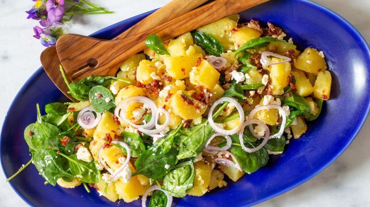 Potatissallad passar till allt och är alltid lite extra festligt. Här gör du den med soltorkad tomat och en supergod dressing.