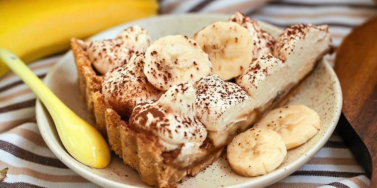 Banan och toffee blir banoffee, den amerikanska bananpajen med vispad grädde och härlig kolasås.