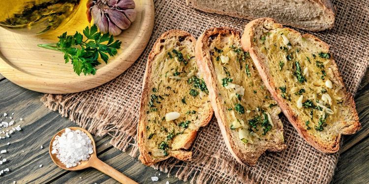 Frasigt gyllene vitlöksbröd med smör och persilja är goda att äta till nästan vilken huvudrätt som helst.