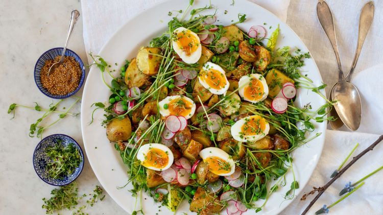 Den här potatissalladen blir perfekt på buffén –den är god som den är och passar utmärkt till lamm, korv eller fisk.
