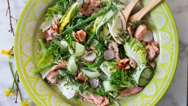 Mycket smak, mycket crunch, så fräsch! Den här laxsalladen är en perfekt bufférätt till påsk men funkar lika bra som en lättare lunch.
