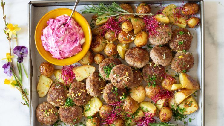 Läckra lammköttbullar serveras med smakrik potatis med citron. Mums!