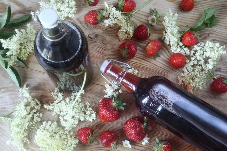 Den här saften på jordgubbar och fläder får tankarna att vandra tillbaka till bardomens somrar.
