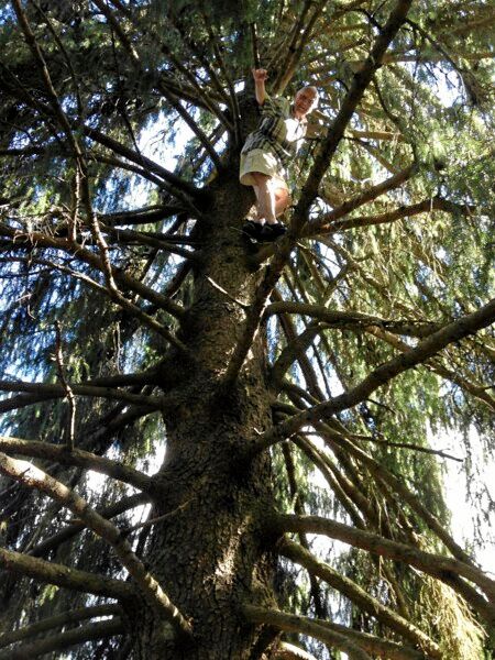 Motivering: Ända sedan jag var barn har jag drömt om att klättra högt, högt i en sådan här gran, sa min 80-åriga far. Gör det då, sa jag!