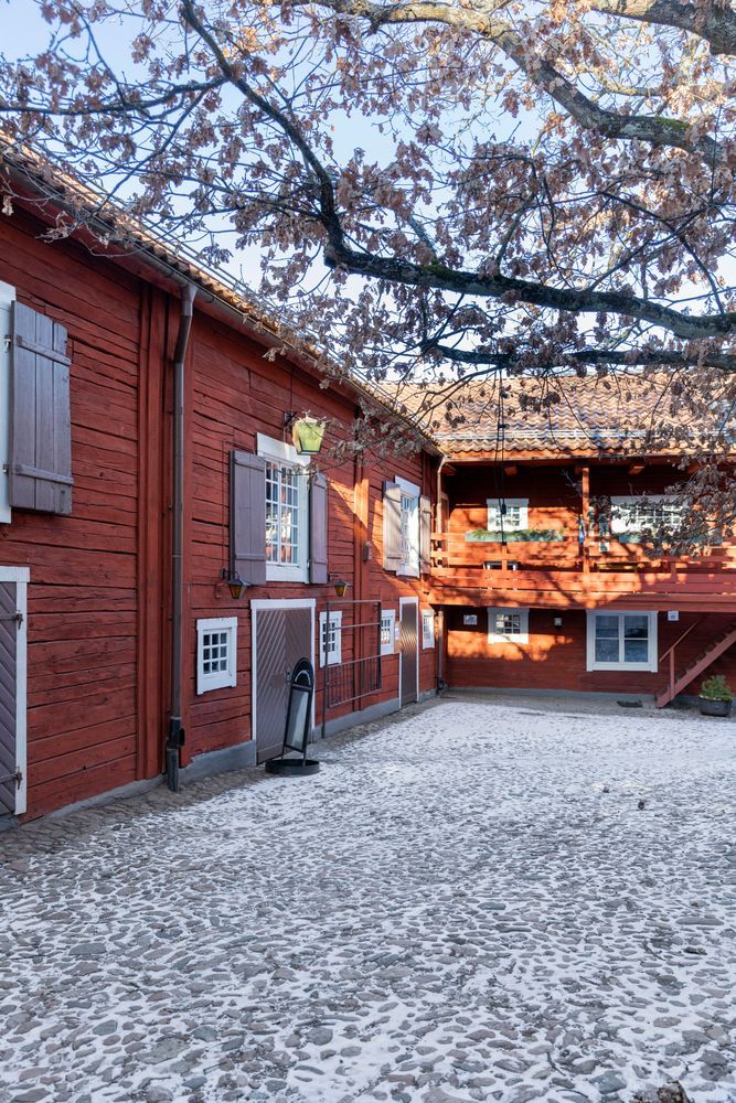 Det är rödfärgat timmer och lertegel i långa banor. Kullerstenslagda innergårdar och linoljemålade fasader i glada karamellfärger. Spröjsade fönster med munblåsta glas, spegeldörrar och tjärade bodluckor.
