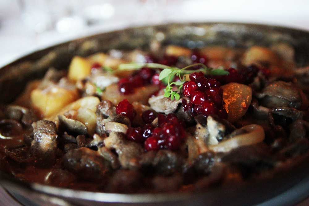 På kvällen steks lax över öppen eld (på finskt vis) och till efterrätt får man hembakt kladdkaka med nyplockade hjortron och grädde. Som avslutning på kvällen står den vedeldade badtunnan uppvärmd och klar för ett midnattsbad.