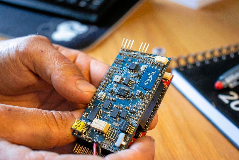 – Just nu består den av två olika kretskort, tanken är att få plats med alla komponenter på ett kort och göra den mindre. Prototypen gjorde jag genom att såga sönder en sådan där leksak med tyngd i botten som alltid står upp för att den alltid ska ligga åt samma håll. Men nu tänkte jag antingen försöka 3D-printa ett hölje, eller hitta någon färdig produkt som går att använda som skal. Ju mindre den är desto mindre rör kan den ju färdas genom utan att fastna, förklarar Sverker Hagsten.