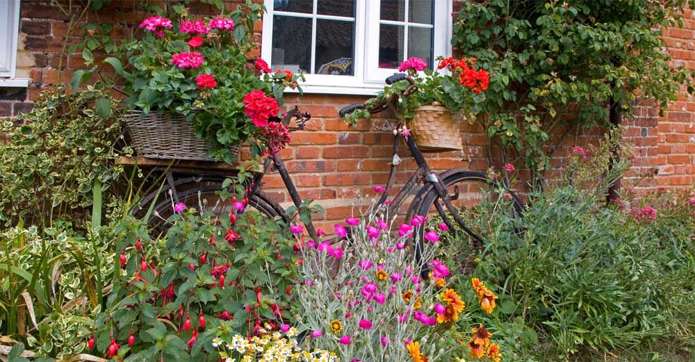 Har din gamla cykel sett sina bästa dagar? Tänk om! I trädgården kan den få nytt liv. Fyll blomkorgen med härliga blommor och linda vackra klätterväxter längs med ekrar och ram.