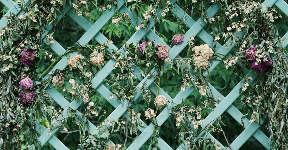 Måla spaljén i en färg som du verkligen tycker om, på så sätt blir hela trädgården mer färgglad. Torkade blommor blir dessutom extra fina mot en vacker bakgrund.