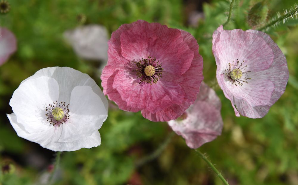 Kornvallmo ’Mother of Pearl’ får stora enkla blommor i antikpurpur, pastellrosa och åsklila. Lättodlad ettåring för rabatt och blomsteräng, blir 40 centimeter hög.